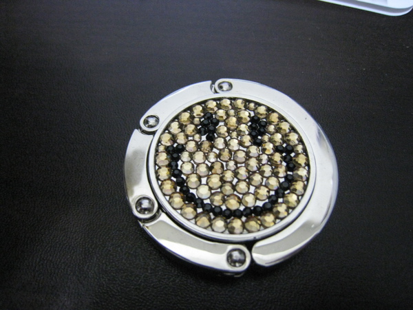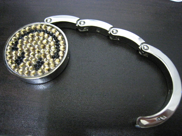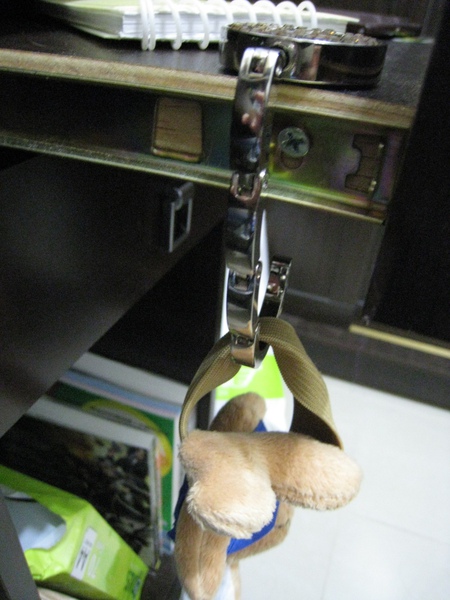 沒有椅子掛包包的時候,就將包包掛勾放在桌面,下面的勾勾就可以垂著掛東西溜!!(讚!)